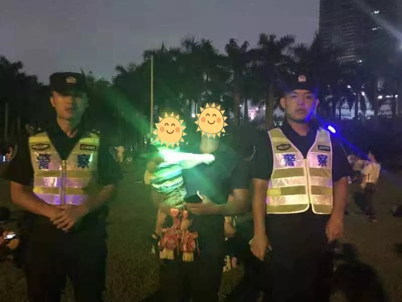 中秋夜21时许,深圳市公安局福田分局机动训练大队四中队队员黄俊豪、施裕枫在莲花山巡逻时,发现一名两岁左右的幼童和父母走散了在哭着找妈妈,因小孩年龄太小无法获取父母的联系方式,两名队员便一直守护着孩子并在附近寻找其父母,直到找到其父亲后送还小孩。