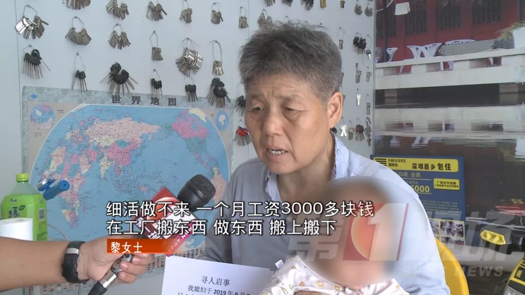 儿媳妇走失,那儿子怎么不过问呢?采访中记者了解到,这家人情况特殊,他们老家在湖北,来深圳已经十几年了,黎女士老两口育有一子一女,女儿情况正常,目前在深圳一工厂做文员。儿子今年31岁,从小智力略有缺陷,来深圳后有好心的工厂老板,给了他一份工作。