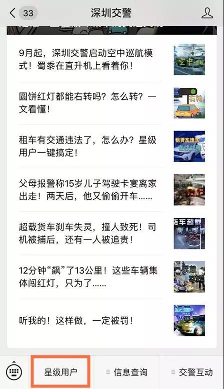 2、深圳交警权威发布:点击 菜单栏“星级服务”-“星级用户”;深圳交警:点击 菜单栏“星级用户”。