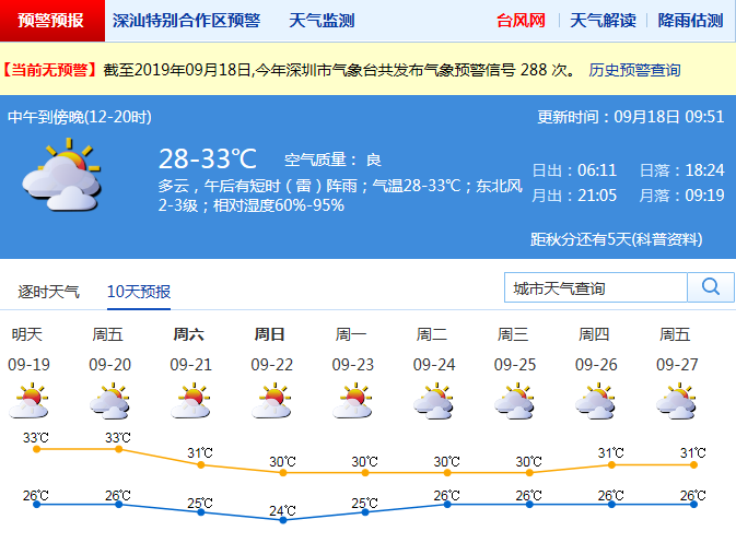 见圳客户端·深圳新闻网2019年9月18日讯 你期盼的降温就要到来了。来自气象台的消息,本周末21日起,北风加大,深圳气温会有下降。