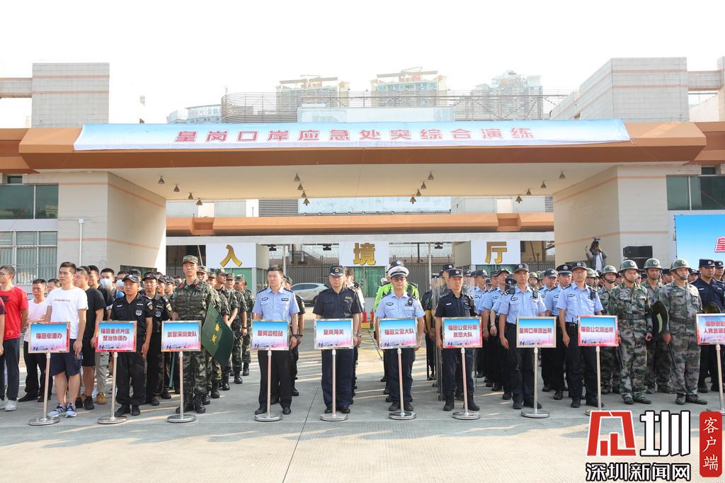 福田区委副书记黄晓鹏,福田区委常委、人民武装部部长李惟海,福田区人民政府副区长、市公安局福田分局局长、党委书记江峰,深圳海关党组成员、皇岗海关关长王味冰,深圳边检总站党委委员、副总站长、皇岗边检站站长陈宏军,深圳市反恐办、深圳市口岸办、以及各参演单位领导现场检阅观摩了本场演练。