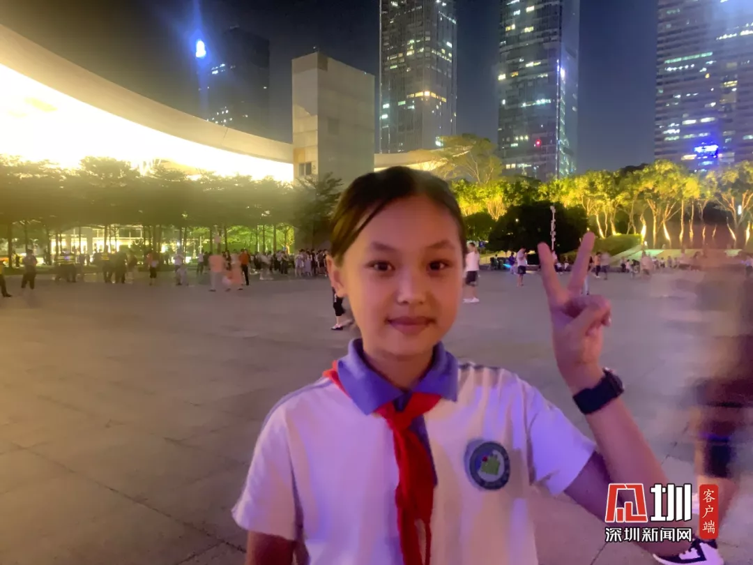 【福田区】一位五年级小学生形容这场灯光秀“震撼”“美好”,她从历史书上知道新中国经历了很多,看到新中国和深圳越来越棒,觉得非常幸福。