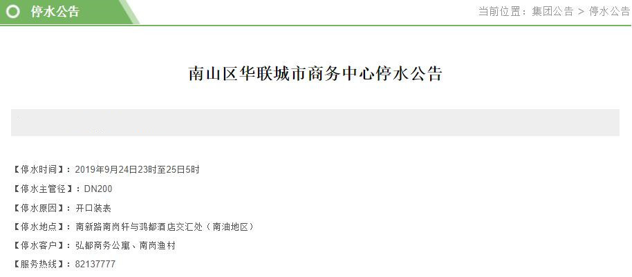 9月23-24日,福田南山罗湖多片区将停水,这些小区受影响