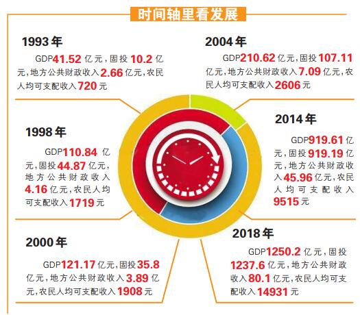 1997年,全区GDP达到97.4亿元,比1993增长71.5%;工业增加值达到25.2亿元,比1993年增长118.8%;地方财政收入达到3.99亿元,比1993年增长141.82%;农民人均纯收入达到1533元,比1993年增长125.11%。