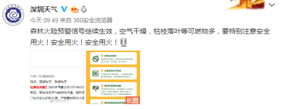 此外,森林火险预警信号继续生效,空气干燥,枯枝落叶等可燃物多,要特别注意安全用火!