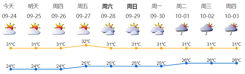 晴天干燥;气温24-31℃;北风3级,沿海和高地最大阵风6级;相对湿度30%-65%。