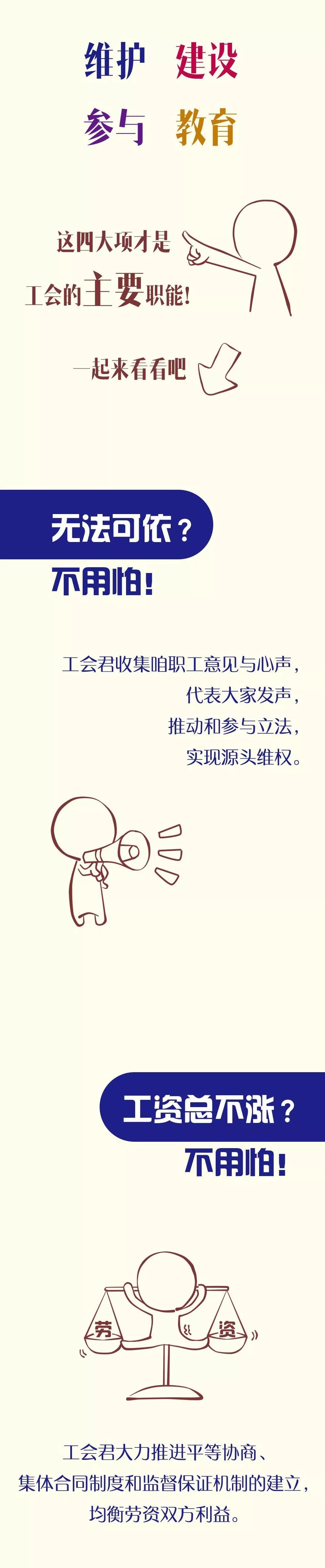 深圳市总工会坚持中国共产党的领导,坚定不移地走中国特色社会主义工会发展道路。简单来说,主要有维护、建设、参与、教育四大职能。维护职工朋友的合法权益、组织劳动竞赛、帮助职工小伙伴提高科学文化素质等等,职工朋友的维权、服务、教育、帮扶......都是工会的职能。