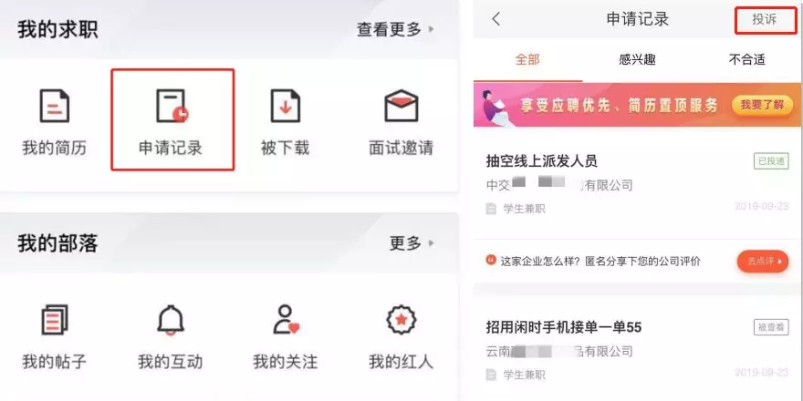 填写完“简历”,随手投了两家招聘“网络兼职”的公司。