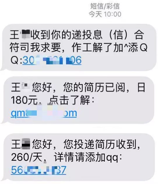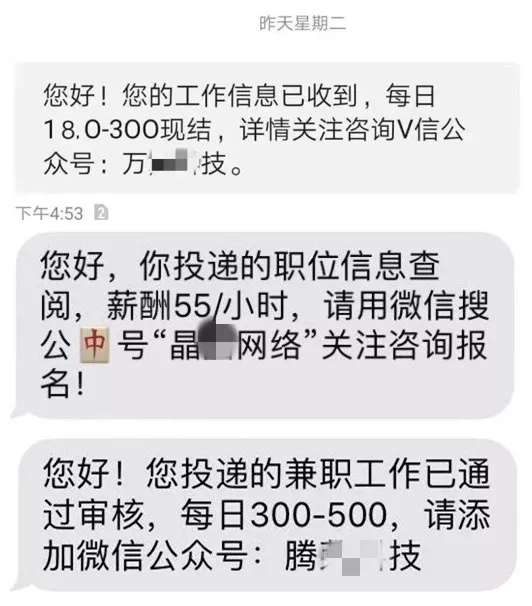 内容更是大同小异,都是要求应聘者添加某个QQ号或者关注某个微信公众号。