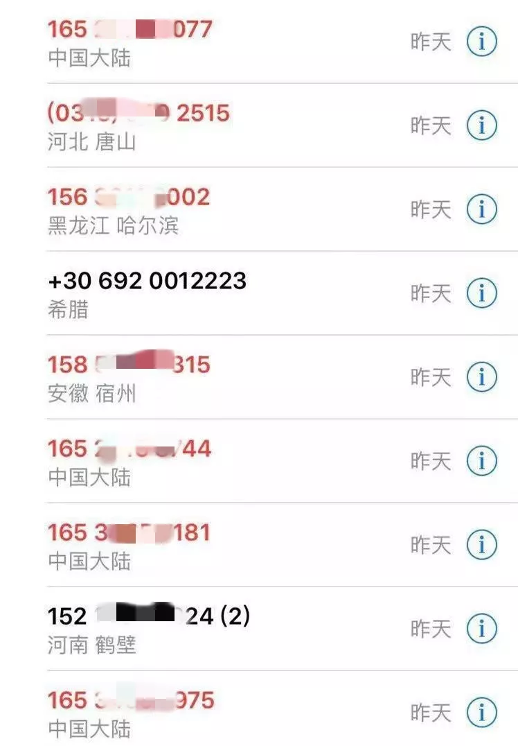 各种招聘电话以几分钟一个的频率不断打进来。其中不少号码一再被提示为高风险号码。