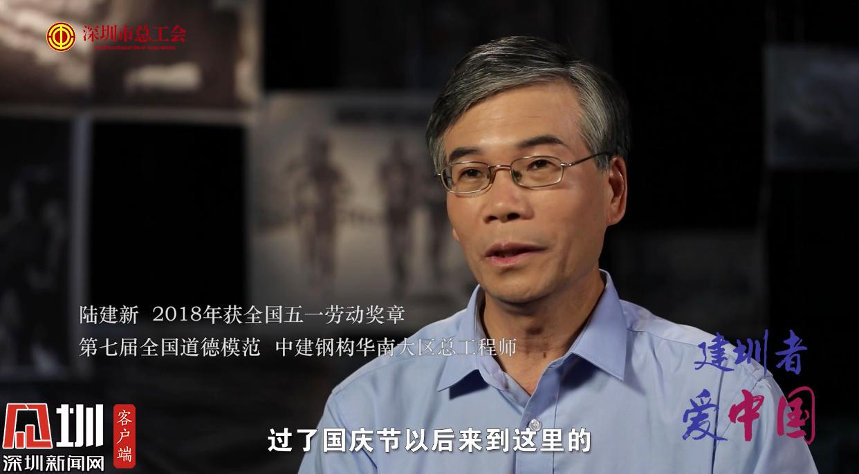 中建钢构华南大区总工程师陆建新于2018年获得全国五一劳动奖章,他也是第七届全国道德模范。18岁就已来到深圳参与国贸大厦建造的他,谈及在深圳奋斗的历程时,几乎是热泪盈眶。