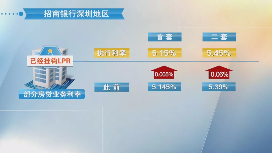 据记者了解,招商银行在深圳地区部分房贷业务利率已经挂钩LPR,执行利率为首套5.15%、二套为5.45%,此前首套为5.145%、二套为5.39%,分别上涨0.005%、0.06%。