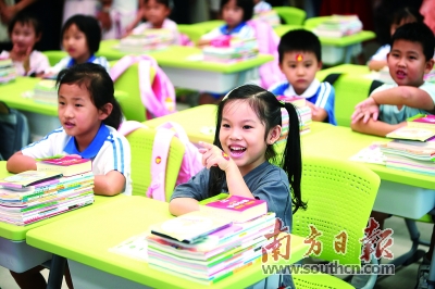 深圳正加大投入补教育短板。图为深圳高级中学东校区小学部初中部小学一年级新生课堂。南方日报记者朱洪波摄