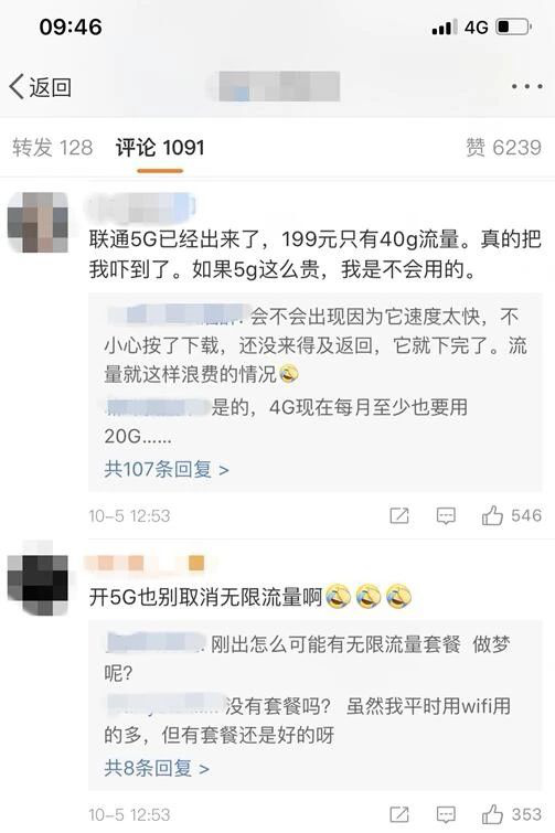 也有很多用户在观望中,"等你们用个几个月5G,告诉我费用,我再看看是不是要跟你们一起混。"