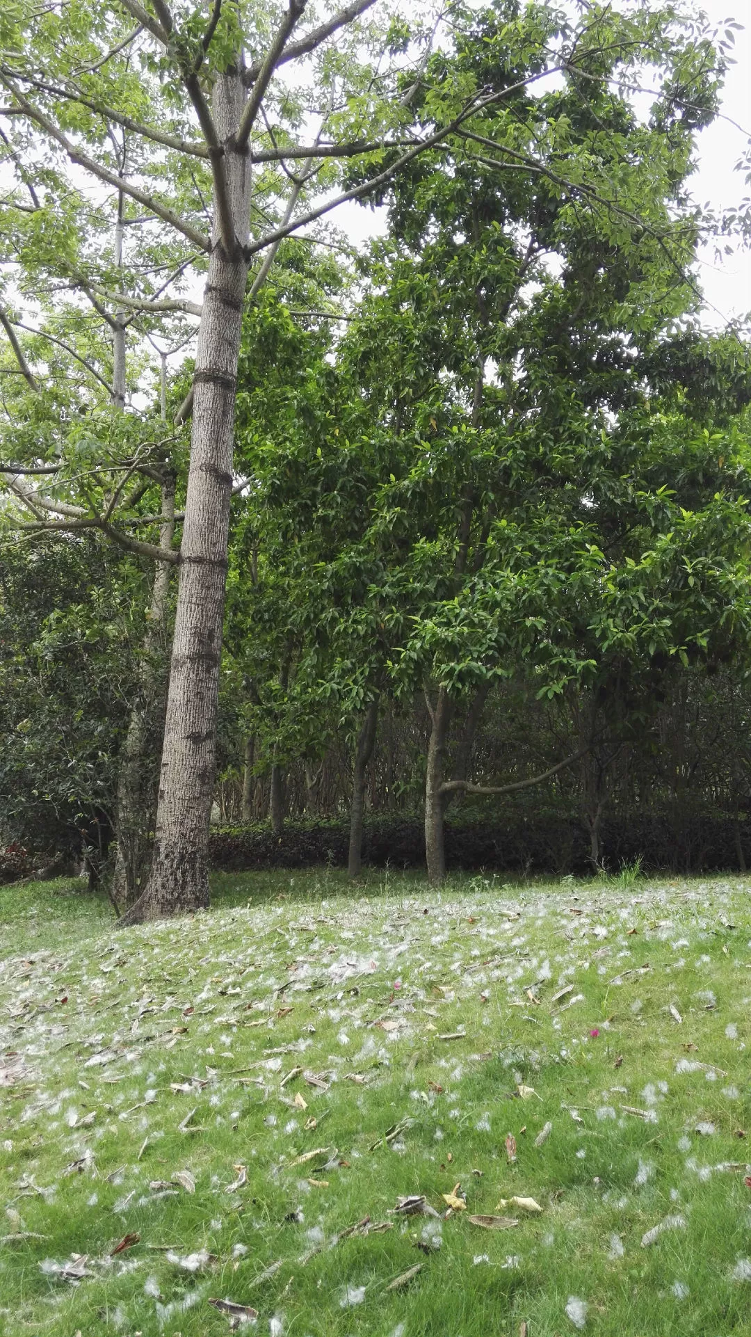 他们拟通过在木棉花开后、落籽前把花打落,达到木棉树无法结果、没有棉絮的目的。