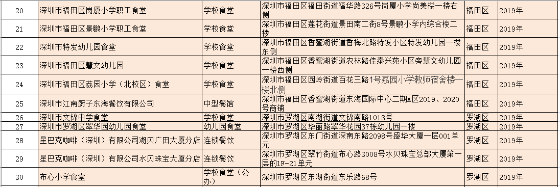 除了新增的A级餐厅外,该局还公布了降级餐厅名单:深圳市龙岗区龙岗街道培英幼儿园食堂因不符合餐饮服务食品安全量化等级A级要求予以降级。以及1家变更单位名称的A级餐饮服务单位:原名称为深圳市光明区培真幼儿园食堂的单位变更名称为:深圳市光明区凤凰街道嘉明幼儿园食堂。