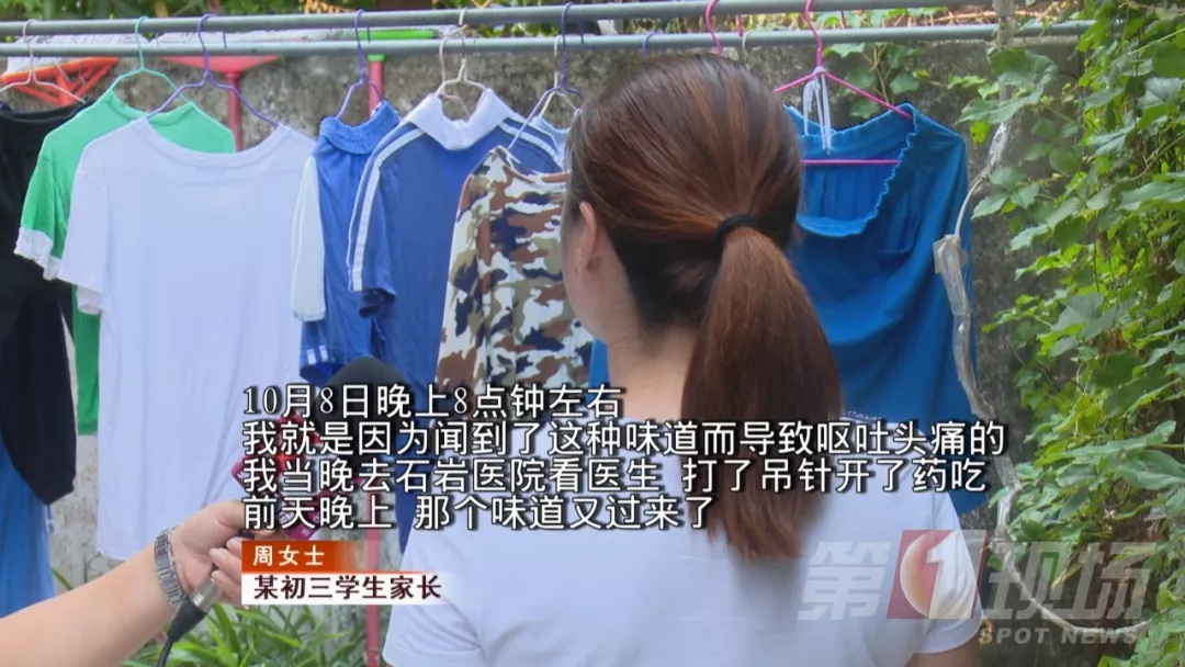 周女士的孩子在该校读初三,在闻到类似“烧塑胶品”的味道后,还出现了呕吐、头晕、嘴麻木的症状,不得不去医院打吊针。