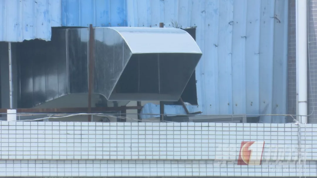 记者爬上学校附近一座高楼楼顶,清楚地看到工厂和宁远学校学生宿舍之间,仅仅是一墙之隔!家长说,废气就是从工业园这栋楼的烟道排出的,正对着学生宿舍楼的方向。