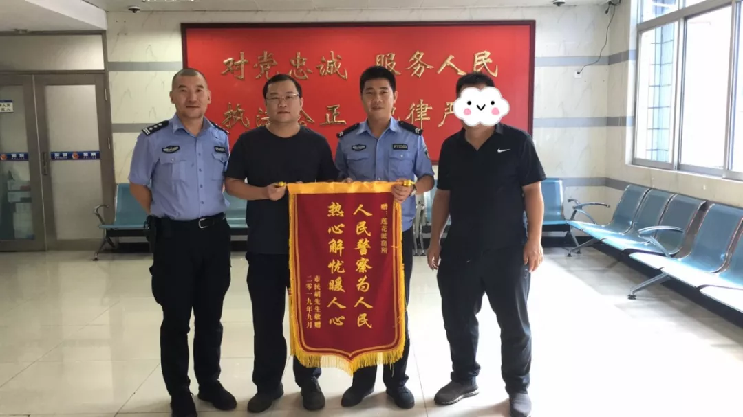 10月12日上午,深圳市公安局福田分局莲花派出所收到胡先生赠送的锦旗,感谢派出所民警帮助其寻回失物。9月30日19时许,胡先生报警称其开车经过某路段停车开门时从车上掉下一个手提包,内有笔记本电脑、现金等物品。接报后,值班民警刘传忠与合成作战室队员李猛、饶鸣国经大数据分析,多方查找,联系上了捡包人员并向其说明情况。当晚22时许捡包人员到派出所将手提包交还事主。