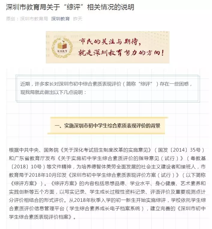 中考必须做义工?深圳市教育局回应:综评结果将不计入中考总分