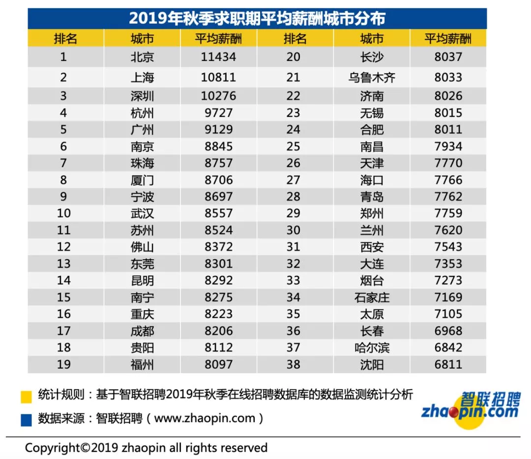 深圳的平均薪酬为10276元/月!
