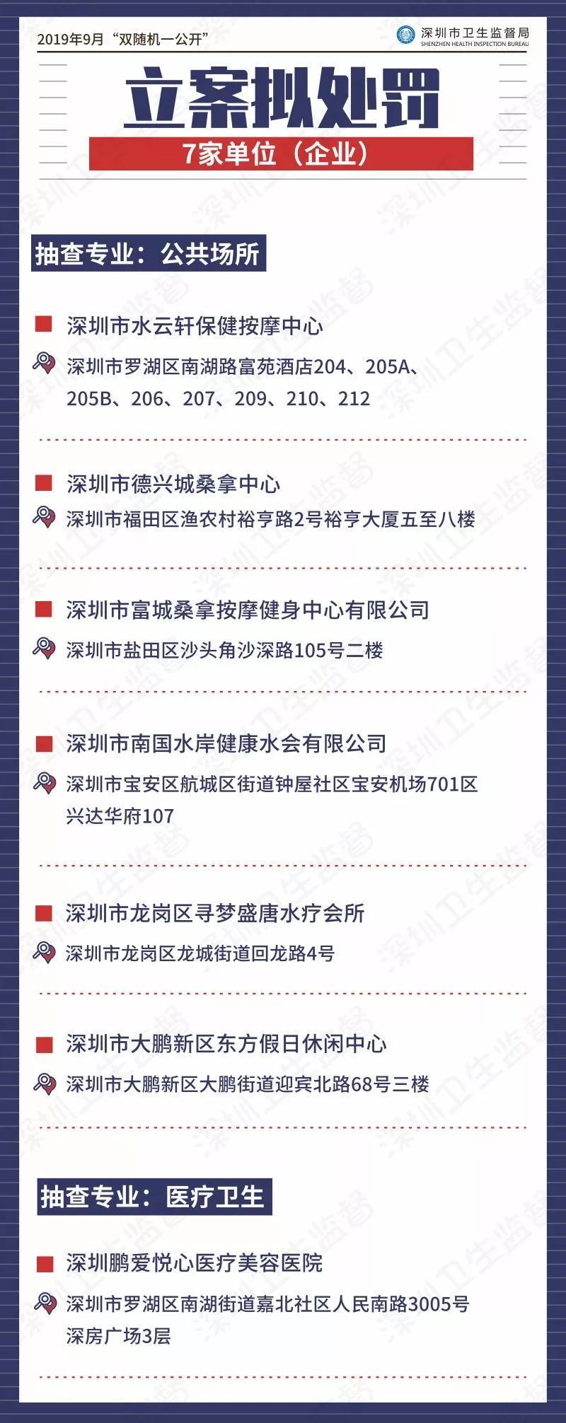 曝光!深圳9月双随机抽查,这7家公共场所和医疗机构被处罚