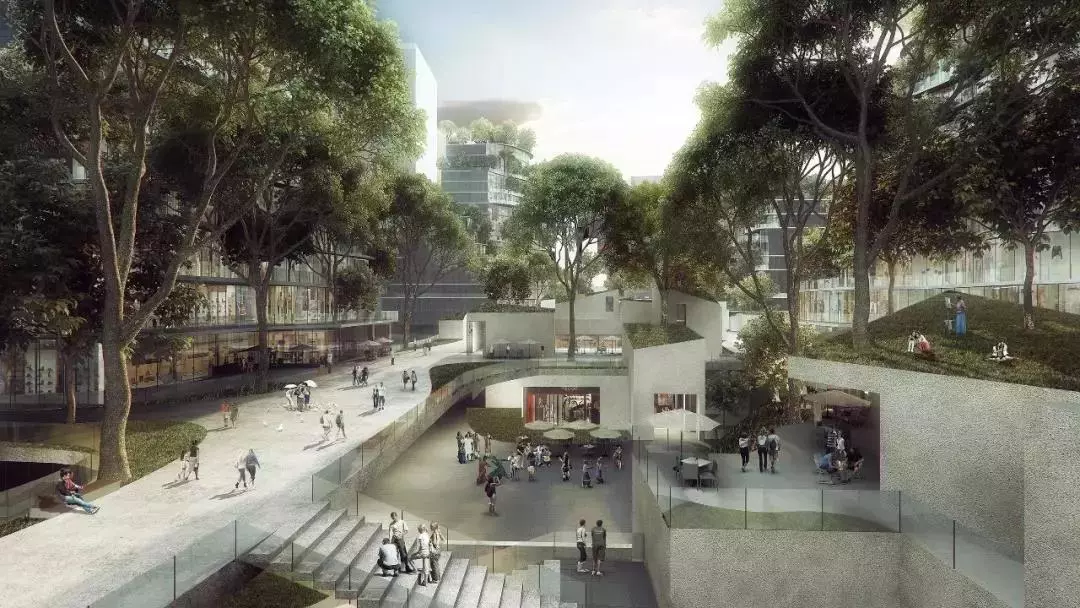 第二部分片区步行景观廊城市人行系统,周边要沿线设置未来生活馆、自然博物馆等多处文化设施的设计。