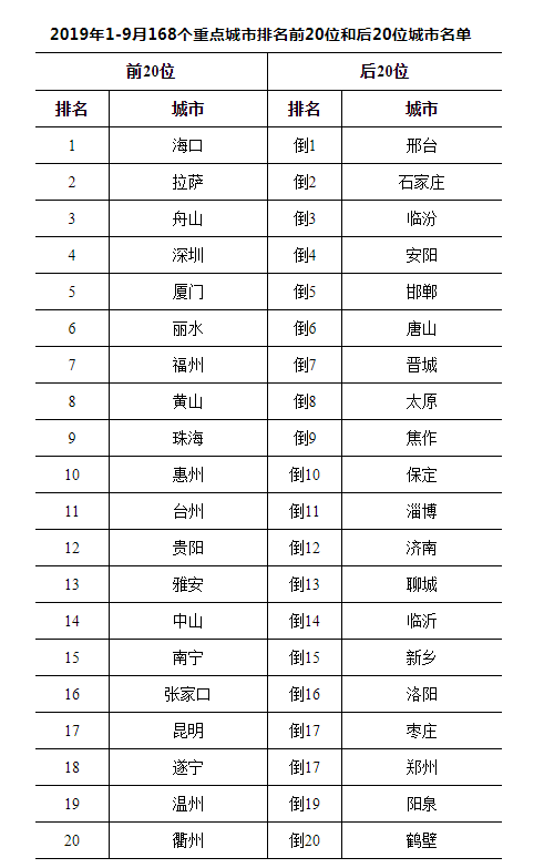 原标题:1-9月全国空气质量深圳排第四,前20名广东占4席