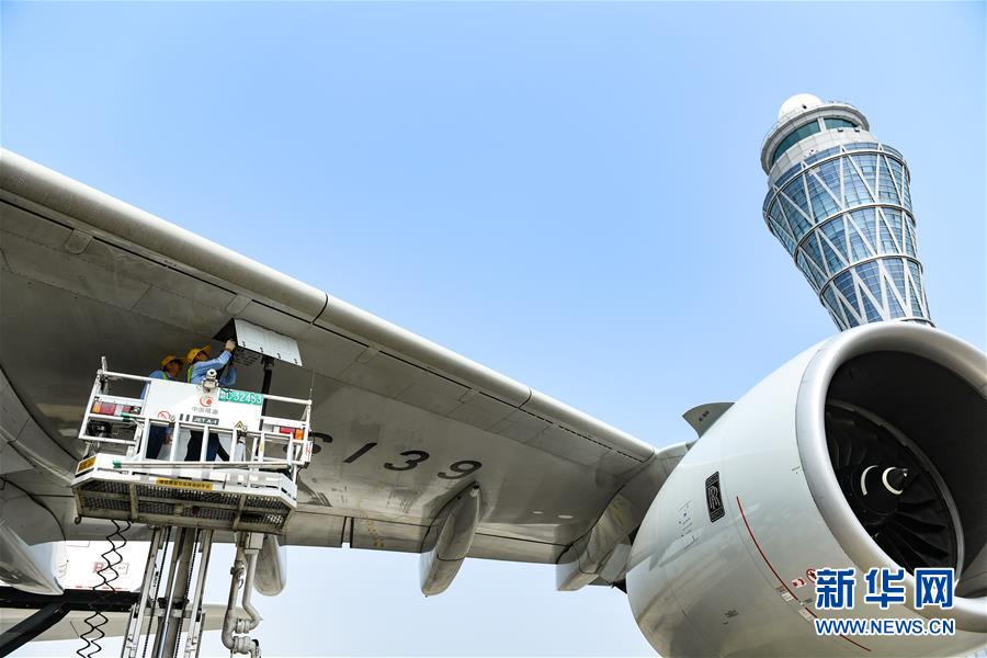 10月27日,工作人员在深圳机场为南方航空空中客车A380客机加油。当日下午,由全球最大宽体客机——空中客车A380执飞的南航CZ3153次航班由深圳起飞前往北京,标志着这款“空中巨无霸”机型重返深圳机场。南航曾在2014年5月开始启用A380执飞京深航线,后因动态运力调配停飞。新华社记者毛思倩摄