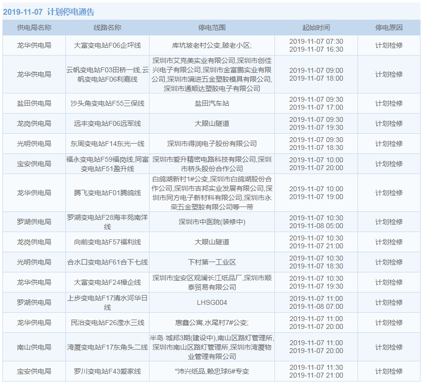 见圳客户端·深圳新闻网2019年10月29日讯 据中国南方电网最新消息:11月1日至11月15日,深圳这些地方将停电!快来看看有没有你家的吧。