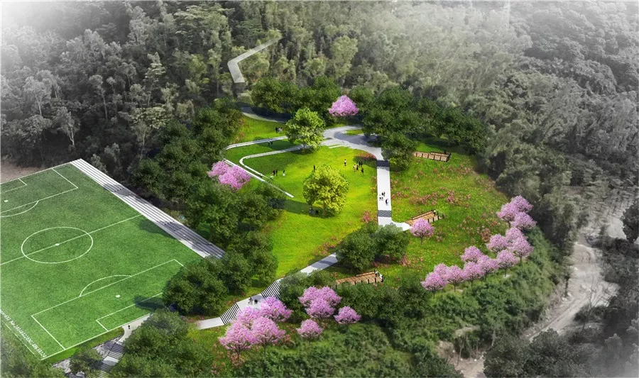 位于人才台北侧山坡,由三个小平台及大草坡组成,半坡种植寓意聚贤引才的紫花风铃木和凤凰木,是远眺城市山水的最好位置。