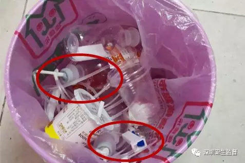 垃圾桶内可见医疗废物。
