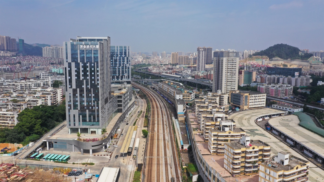 获奖点评: 作者运用高角度俯拍,展示工业站的全貌,以城市中的铁路为主线,突出了深圳的日新月异的变化。