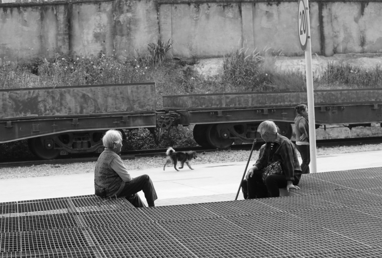 获奖点评: 《往事》旧车站,铁轨边,一对老人相向而坐,人景写生,对称构图,于生活化,趣味性于一体。