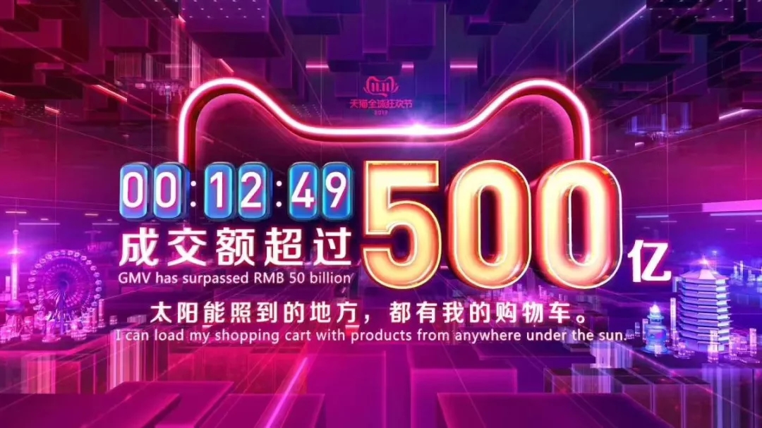 12分49秒,天猫双十一销售额突破500亿元