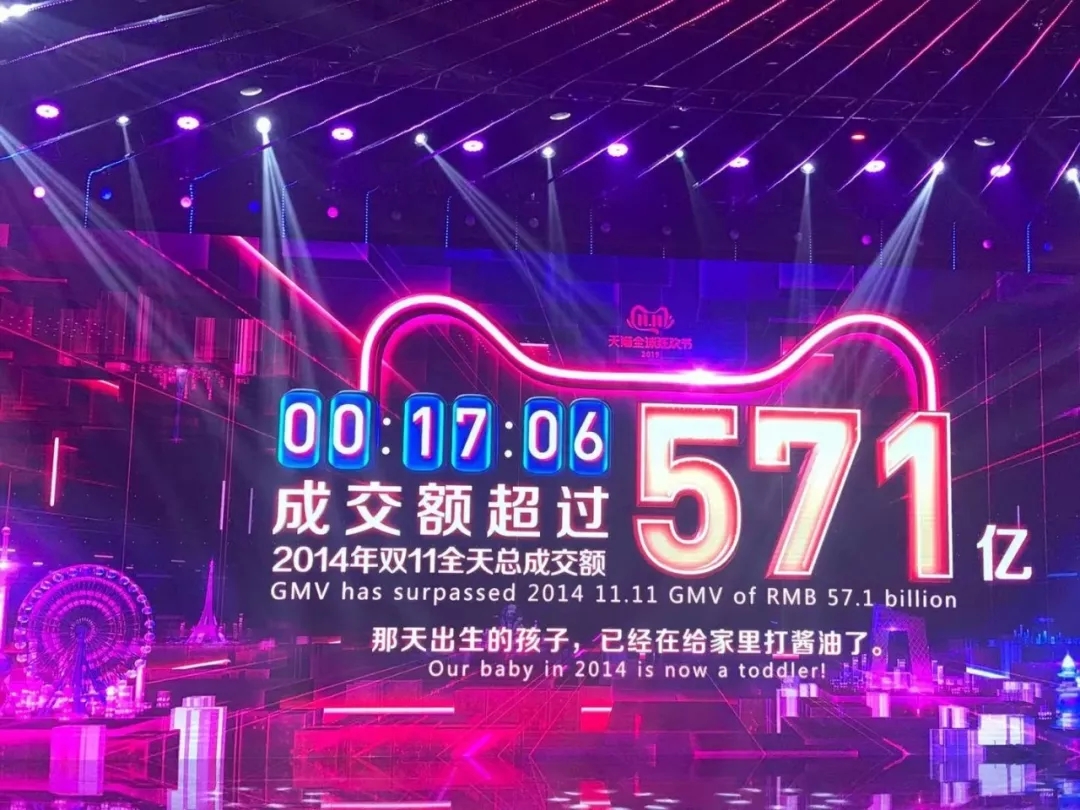 截至11日17分06秒,天猫双十一销售额突破571亿元,已经超过2014年双十一全天总成交额!