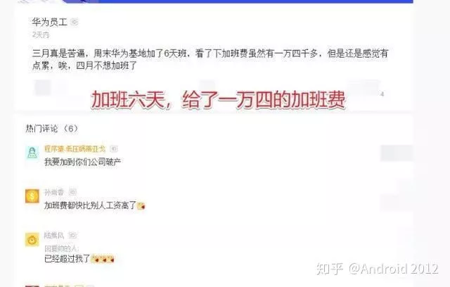 曾有华为员工在网上表示,华为基地加了6天班,看了下加班费,虽然有14000多,但还是感觉有点累,4月不想加班了。