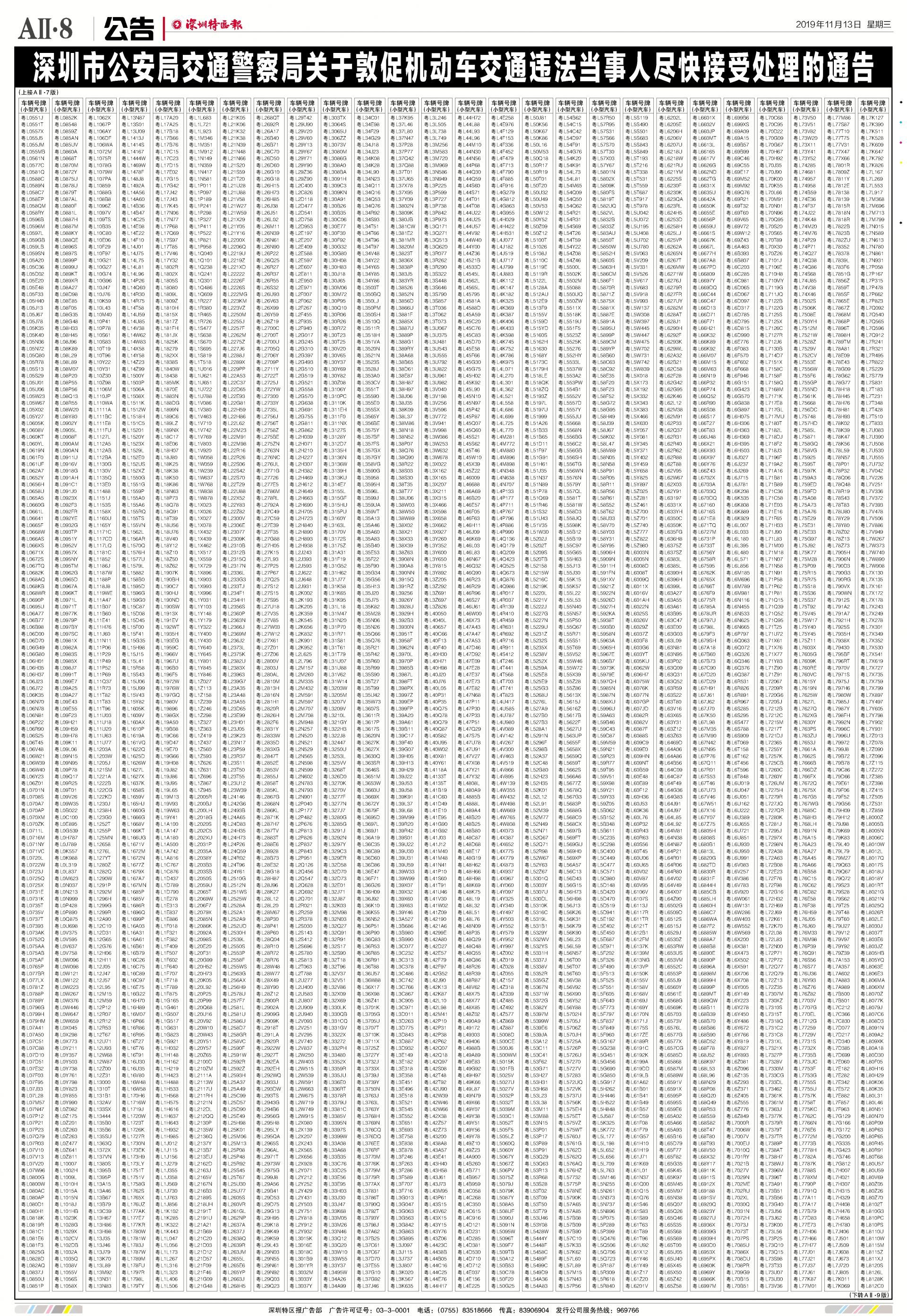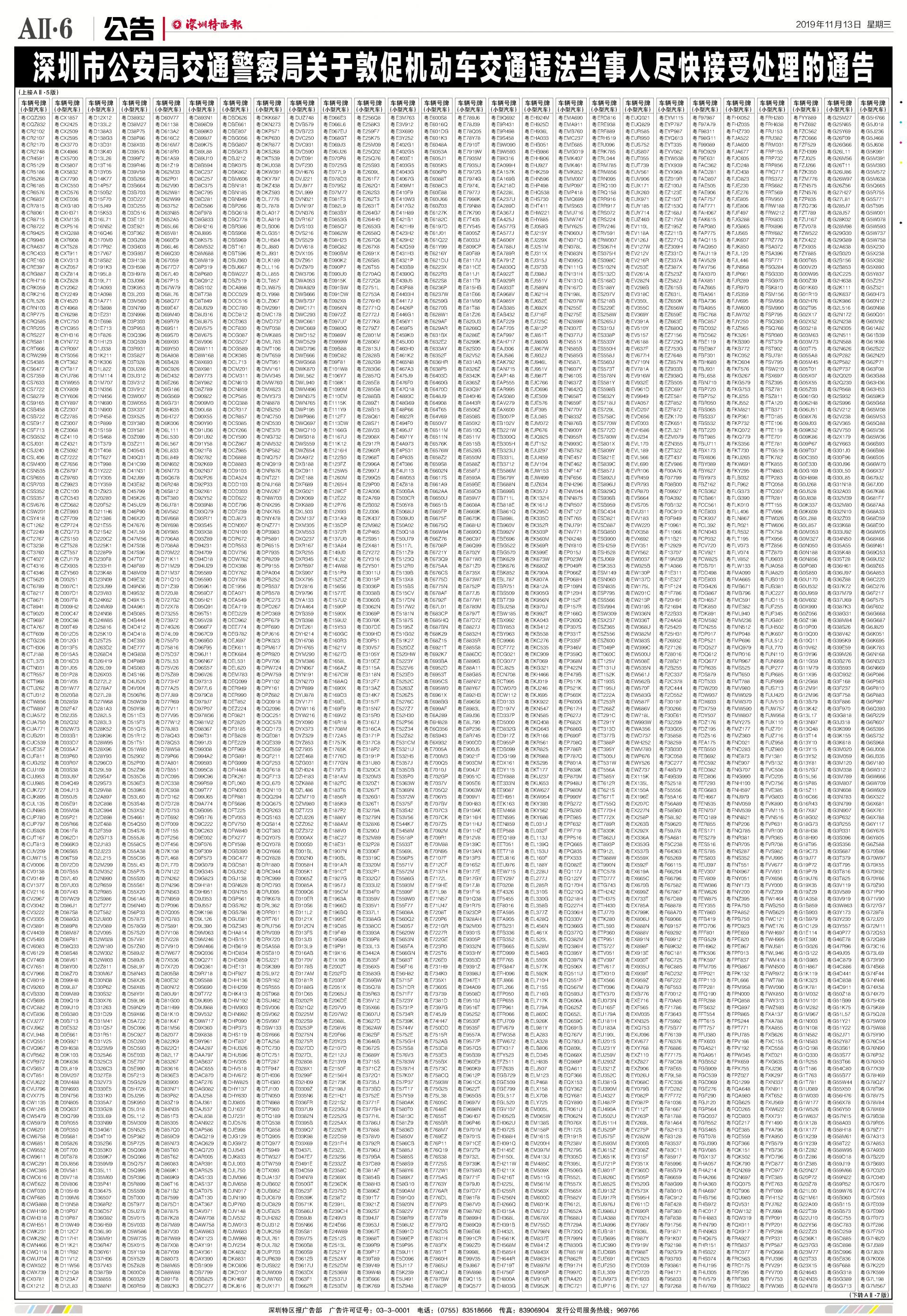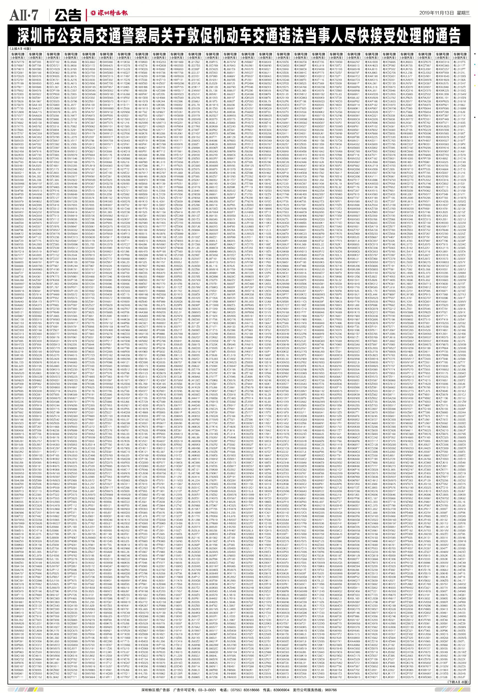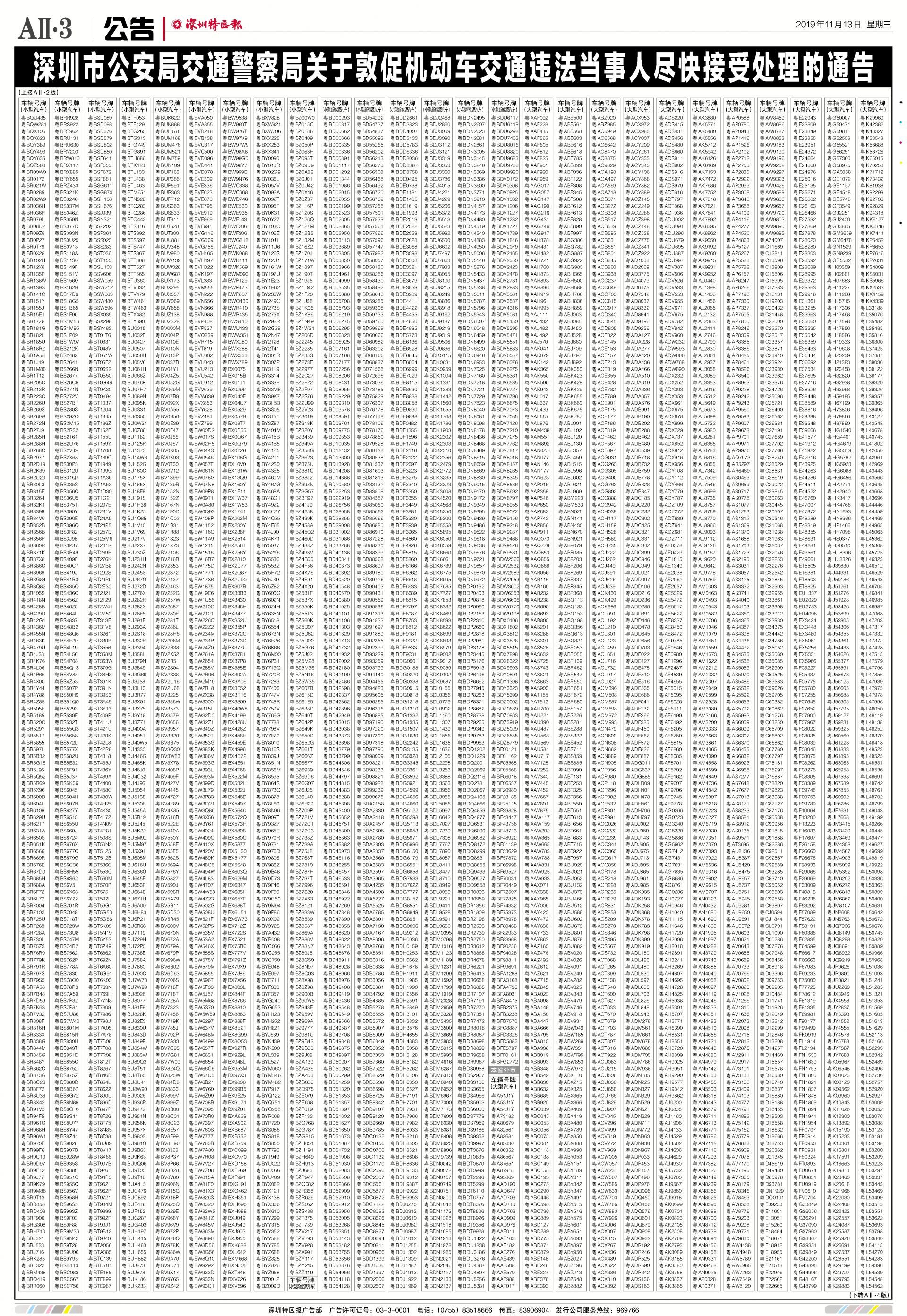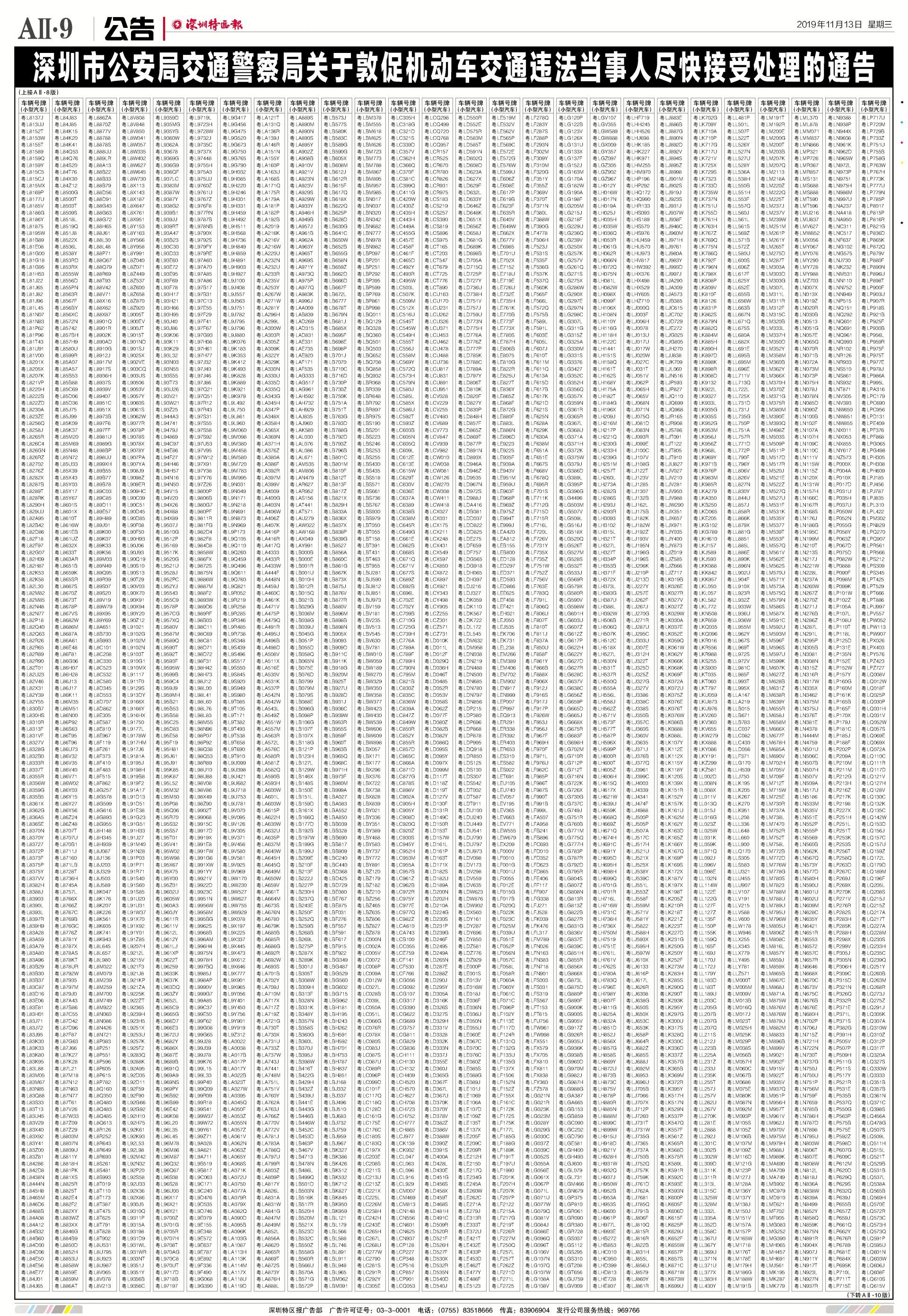 今年7月至10月初,全市机动车被“电子警察”抓拍交通违法行为1342781宗,深圳交警通过多种方式进行交通违法行为告知,但截止至目前仍有部分机动车的非现场交通违法未及时处理。