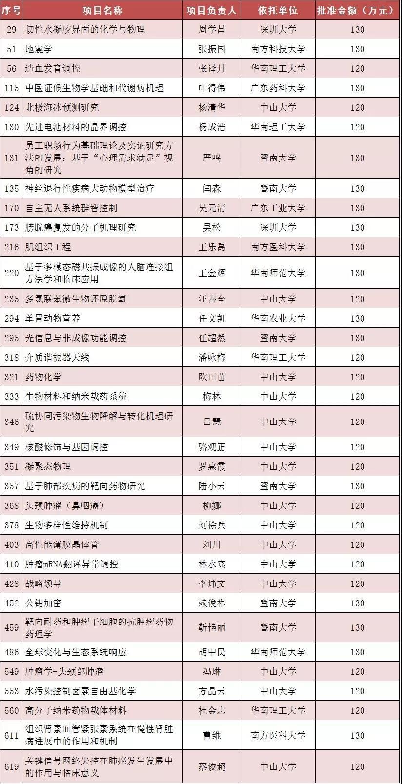 ●2019年国家优秀青年科学基金项目名单 (广东高校部分)
