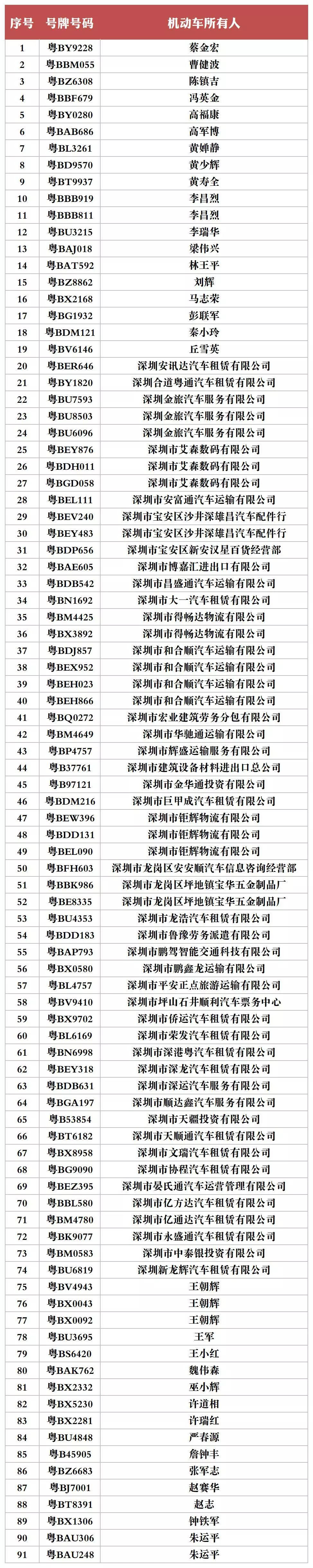 见圳客户端·深圳新闻网2019年11月14日讯 据“深圳交警权威发布”微信公众号消息,部分企业、驾驶人忽视安全问题,对名下“逾期车辆”迟迟不处理,存在着重大安全隐患。深圳交警继续针对重点隐患车辆点名曝光,数据统计截止到2019年11月7日,9辆校车存在逾期未检验,151辆营转非大客车存在逾期未检验、逾期未报废。