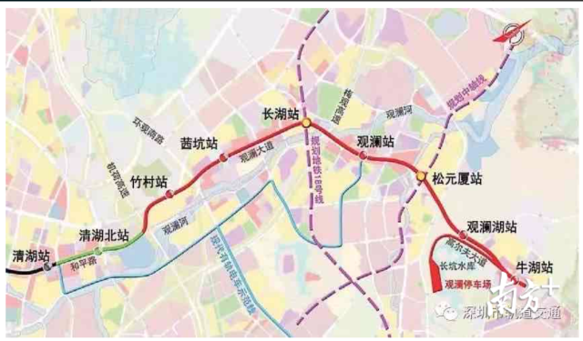 线路共设车站8座,分别为:清湖北站、竹村站、茜坑站、长湖站、观澜站、松元厦站、观澜湖站、牛湖站,其中清湖北站为高架站。