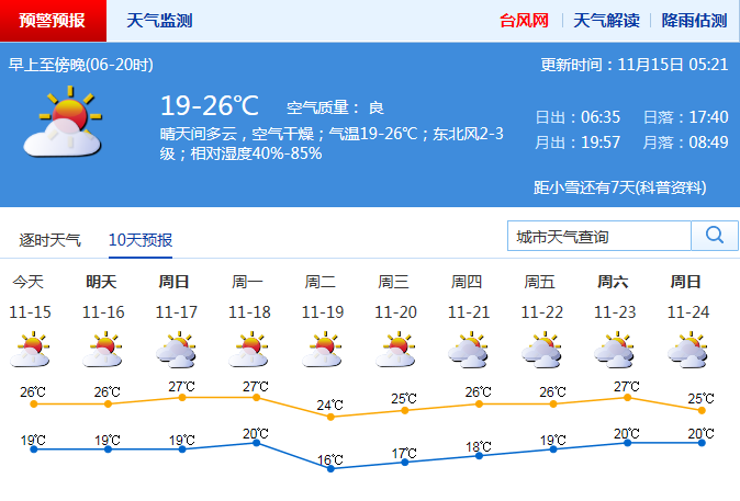 见圳客户端·深圳新闻网2019年11月15日讯 记者从深圳市气象台了解到,15日晴天间多云,空气干燥;气温19-26℃;东北风2-3级;湿度40%-80%。16-17日晴天间多云,早晚清凉,部分时间能见度较差。18-20日新一股冷空气影响,北风明显加大,气温下降。