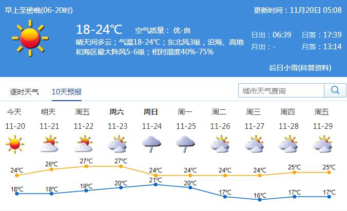 很多市民关心,深圳是不是就此入秋了?根据气象标准,五天滑动平均气温≤22℃,且日平均气温≤22℃那天起便是入秋了。深圳平均入秋时间11月3日,2018 年入秋时间为11月22日。由此来看,能否判断深圳是否已经入秋,还需要再观察一下。