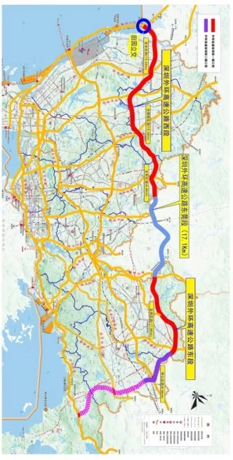 外环高速全线分为深圳段和东莞段,全长约93km(含远期规划里程)。