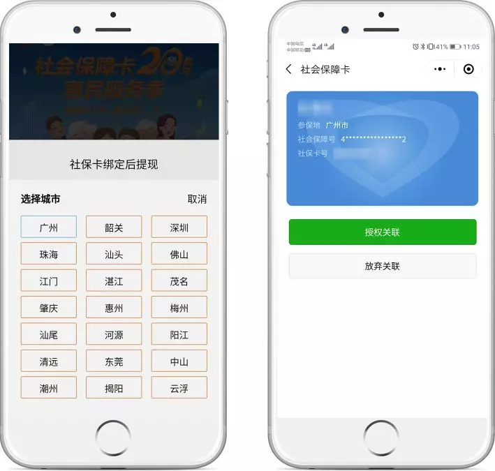 未绑定电子社保卡的用户,需要选择所在地,并授权关联社保卡电子证照。