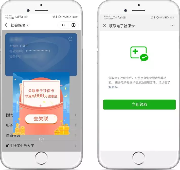 关联完成后,点击弹窗领取电子社保卡,在电子社保卡领取页面点击“立即领取”。