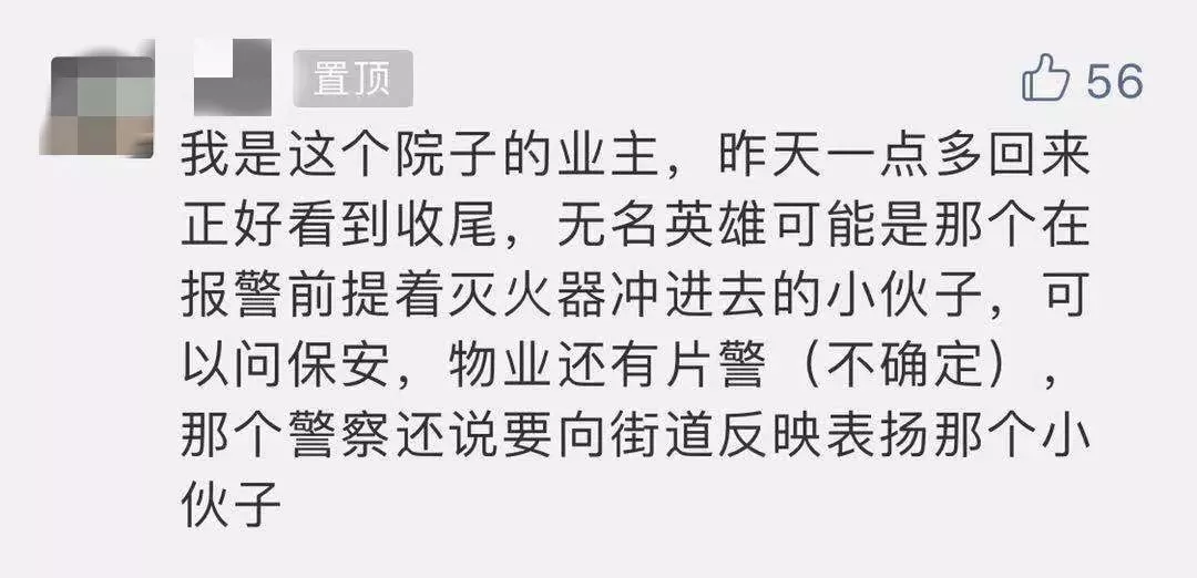 还有网友表示,自己就是小区的业主,并提供了一些细节和线索,帮助我们寻找救火的小伙子。