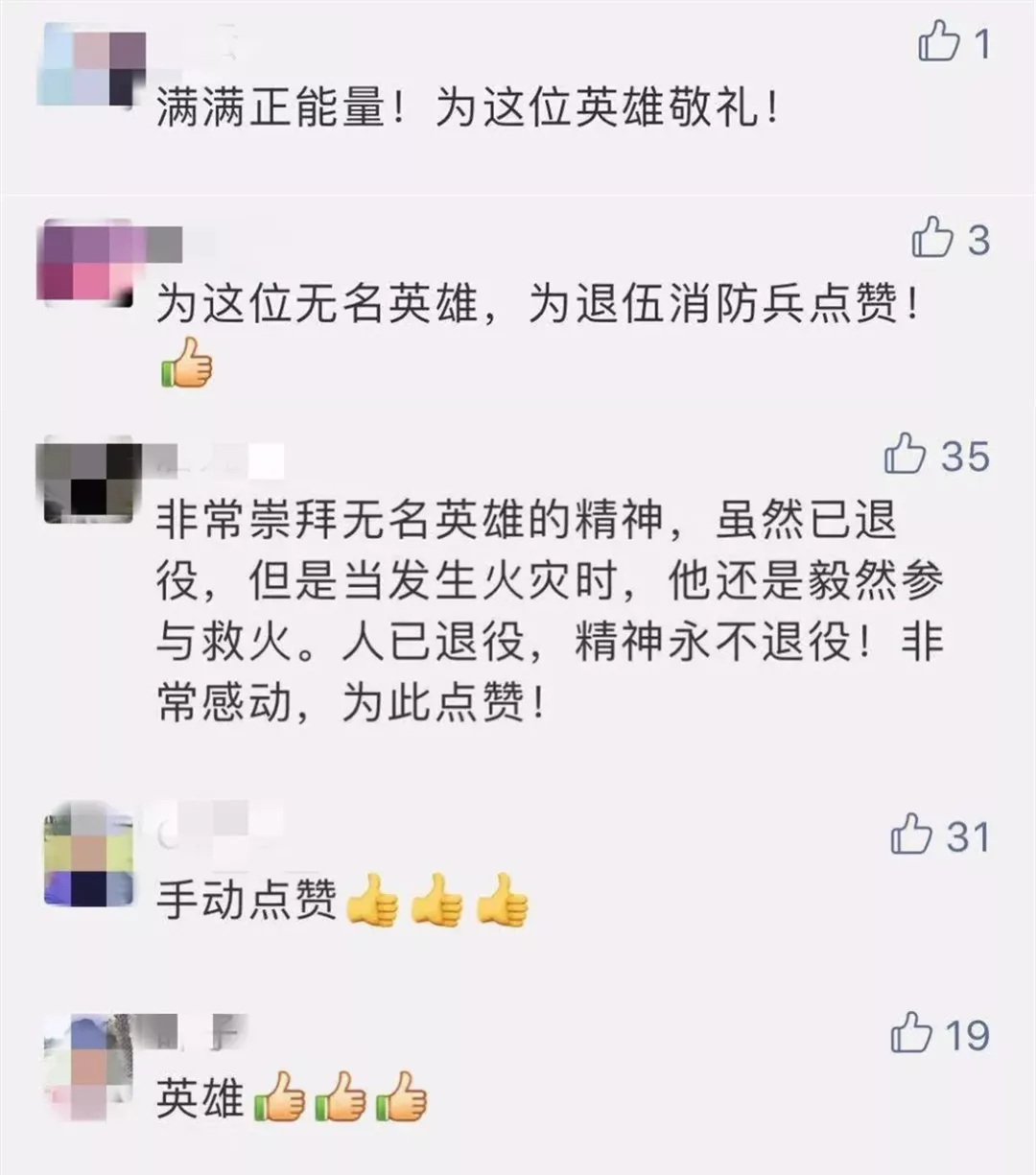 网友纷纷为这位救火的英雄手动点赞: