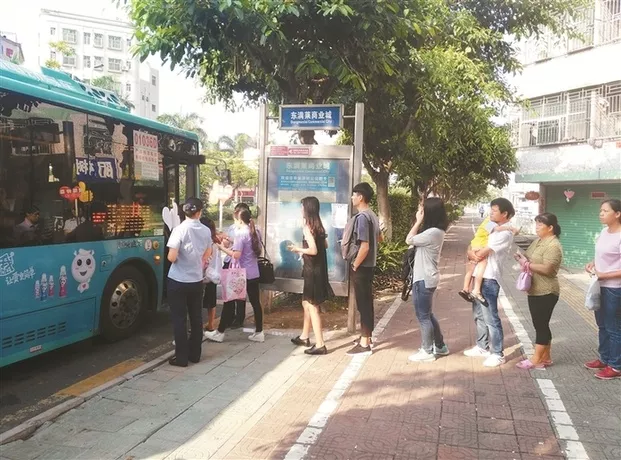深圳有很多公交站台虽然面对人多车少的现实,但乘车人自觉排队,按秩序上车,在客观上加快了公交车周转的速度。有着“文明城市”称号的深圳,在最易拥挤的地方,体现出了文明。