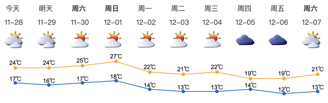 我市多云;气温17-24℃;东北风4级,沿海、高地和海区最大阵风8级左右;相对湿度40%-80%。